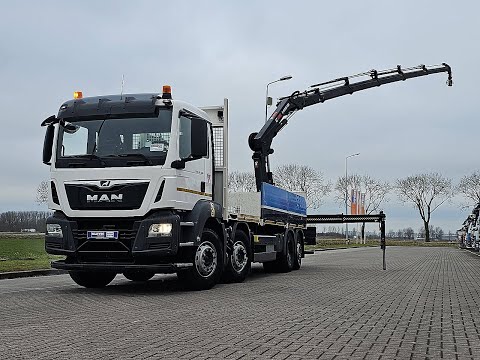 Number of axles: 4, Configuration: 8x2, Own weight: 16525 kg, Gross vehicle weight: 35000 kg, Total fuel capacity: 380 litre, fifth-wheel: Fixed, Diff. locks: 1, Suspension type: air suspension, Cabin type: Short cabin, Cruise control, Tacho, Digital tachograph, Airconditioning, Electric windows, Electric mirrors, Radio/cassette, Color: white, Heated mirrors, Reversing camera, Lighting type: Halogen lamps, Climatecontrol, Bluetooth, Flashing lights, Engine capacity: 309 Kw (414 Hp), Fuel type: diesel, Euro: 6, Gearbox kind: AS-tronic, Gearbox make: ZF, Number of Gears: 12, Power steering, ABS, ASR, PTO, PTO type: 1, Starter battery, Pump, Central locking, Seats configuration: 1+1, Seat cover: Chair cover, Chair adjustment: Manually, Crane, Crane make: Hiab X-Hiduo 228 ES-5, Year crane: 2017, Capacity crane: 22000, Maximum load: 980 kg bij 14,7 m., Number of supports: 2, CE-approved, Control position: side control right, Crane position: Rear position, Hydraulic extendable: 5 times, Extra hydr. conn.: none, Rotator, Pallet-hook, HIAB188ES4